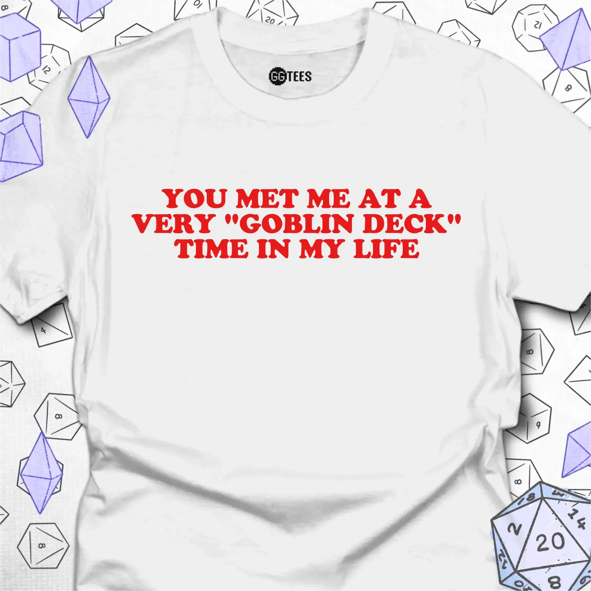 You also will not find these looks anywhere else. GG Tees are designed to celebrate the experience of playing the games we love - the total party kills, the top deck wins, the game night friends. We pride ourselves on some of the hardest hitting, original jokes you'll ever find. And you won't find them anywhere else!