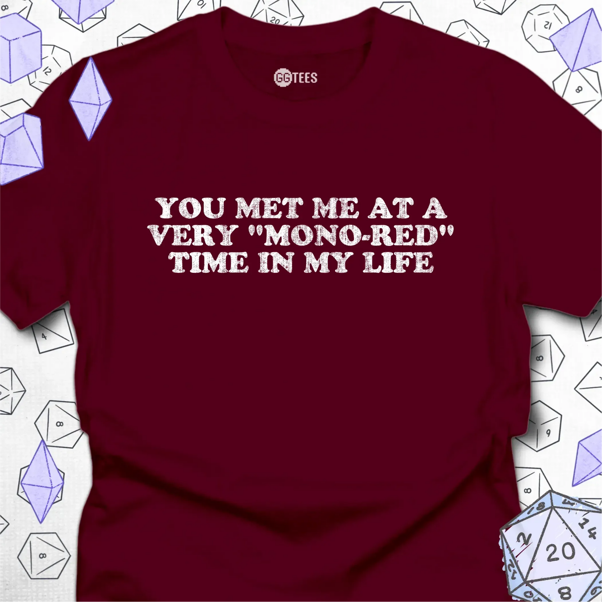 You also will not find these looks anywhere else. GG Tees are designed to celebrate the experience of playing the games we love - the total party kills, the top deck wins, the game night friends. We pride ourselves on some of the hardest hitting, original jokes you'll ever find. And you won't find them anywhere else!
