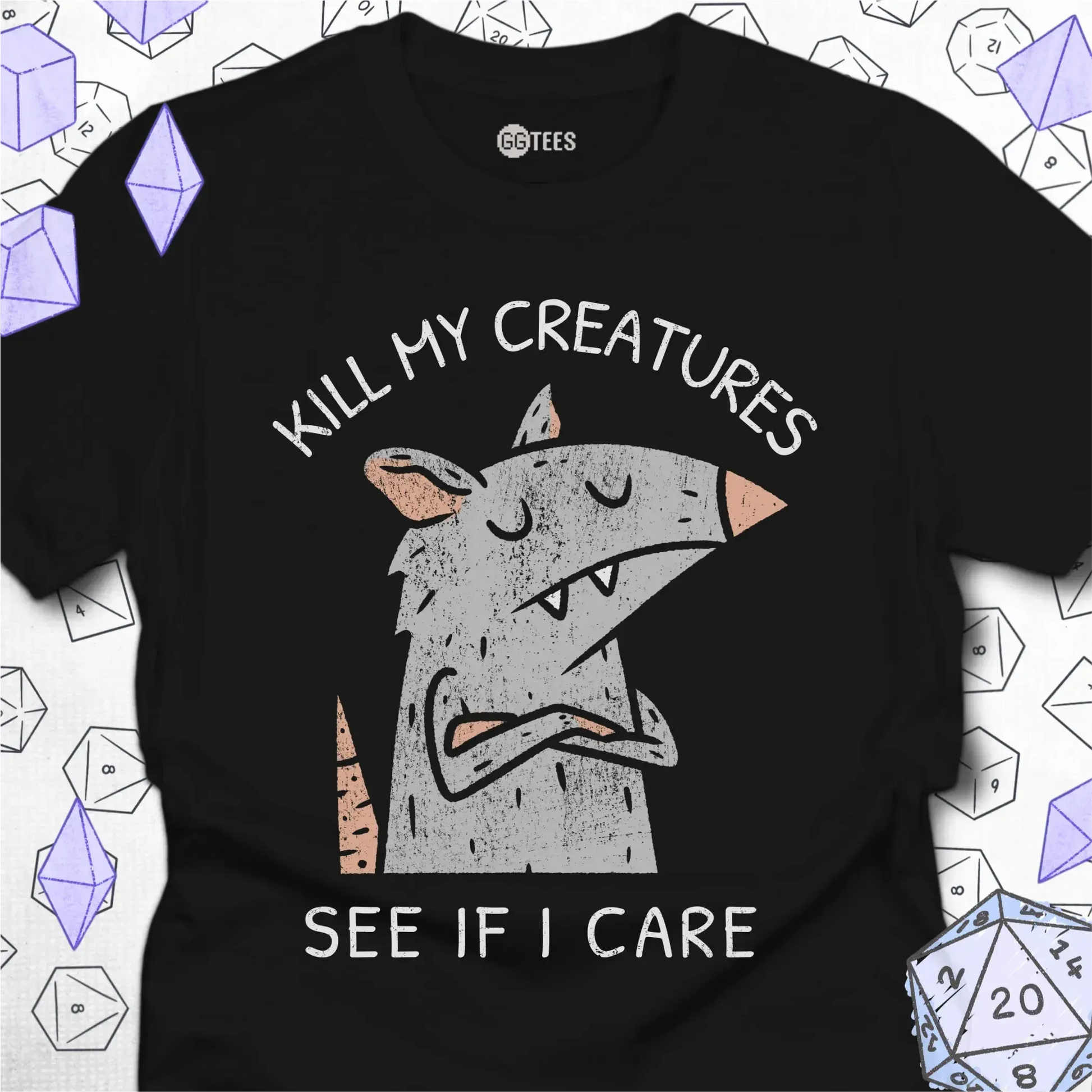 You also will not find these looks anywhere else. GG Tees are designed to celebrate the experience of playing the games we love - the total party kills, the top deck wins, the game night friends. We pride ourselves on some of the hardest hitting, original jokes you'll ever find. And you won't find them anywhere else!